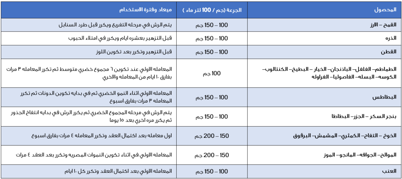 يمكن استخدام المنجنيز المخلبي مع جميع انواع المحاصيل اضافه مع ماء الري بمعدل ١-٢ كجم حسب حاجه النبات وبرنامج التسميد في المزرعه